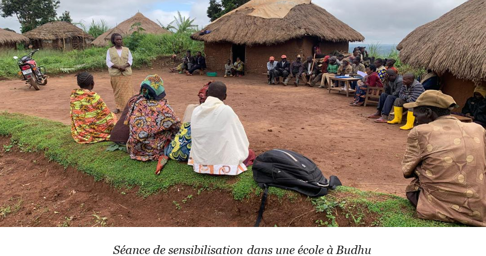 Dans le cadre du projet Réponse intégrée en moyens de subsistances d'urgence et Protection-VBG aux besoins des déplacées, retournées et communautés hôtes dans la ZS Mangala, Territoire de Djugu, Province de l’Ituri, projet financé par le Fonds Humanitaire en RDC, JSD-Grands Lacs a mené en la date du 26 au 28 Novembre à Budhu et masikini; Et du 01 au 03 Décembre à Paty, des séances de sensibilisation à l’occasion de la campagne des 16 jours d’activisme contre la violence basée sur le genre. Ces séances ont été menées dans le territoire de Djugu, Zone de santé de Mangala dans les Aires de santé de Paty, Budhu et Masikini. Globalement 327 personnes ont participé à ces sensibilisations soit 89 personnes (36 femmes et 11 hommes, 10 garçons et 32 filles) à Paty, 121 personnes (45 femmes et 27 hommes, 16 garçons et 33 filles) à Budhu et 117 personnes (63 femmes et 11 hommes, 30 garçons et 13 filles) à Masikini. Au travers les diffusions de messages clés, focus groupes et discussions sur le thème international, national, et provincial ; l’activité a permis d’informer d’une manière globale, les communautés de ces trois Aires de santé sur les VBG et EAS, leurs conséquences, le mécanisme de prévention et le circuit de référencement. La technologie, bien qu’elle soit une source d’acquisition de connaissances, peut également être utilisée pour commettre des violences. Un accent particulier a été mis sur les « violences numériques », telles que le harcèlement en ligne (sms, audios, etc) et le partage non consenti d’images et vidéos, le chantage, l’extorsion, des propos incitatifs à la violence qui peuvent avoir des répercussions graves sur la vie réelle des victimes.